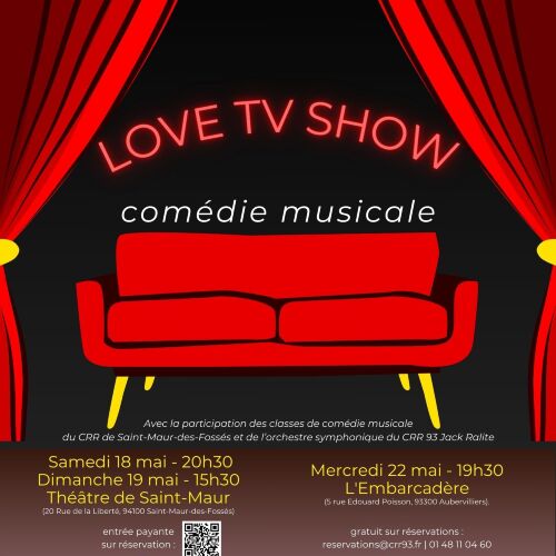 Afficher le planLa classe de comédie musicale du Conservatoire de Saint-Maur présente son nouveau spectacle, sous la forme d’une revue américaine des années 50. Emphase orchestrale, femmes fatales et hommes à bretelles, grands tableaux chorégraphiques, il y a ici tous les ingrédients d’un show très glamour ou l’humour se taille la part belle. Les jeunes artistes de la classe de comédie musicale seront accompagnés par l’orchestre symphonique du Conservatoire d’Aubervilliers, installé en fosse pour l’occasion.
